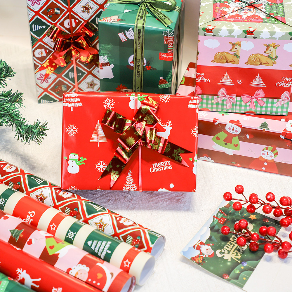 圣诞节日店庆礼品礼盒礼物堆头包装纸diy装饰纸卡通圣诞手工彩纸