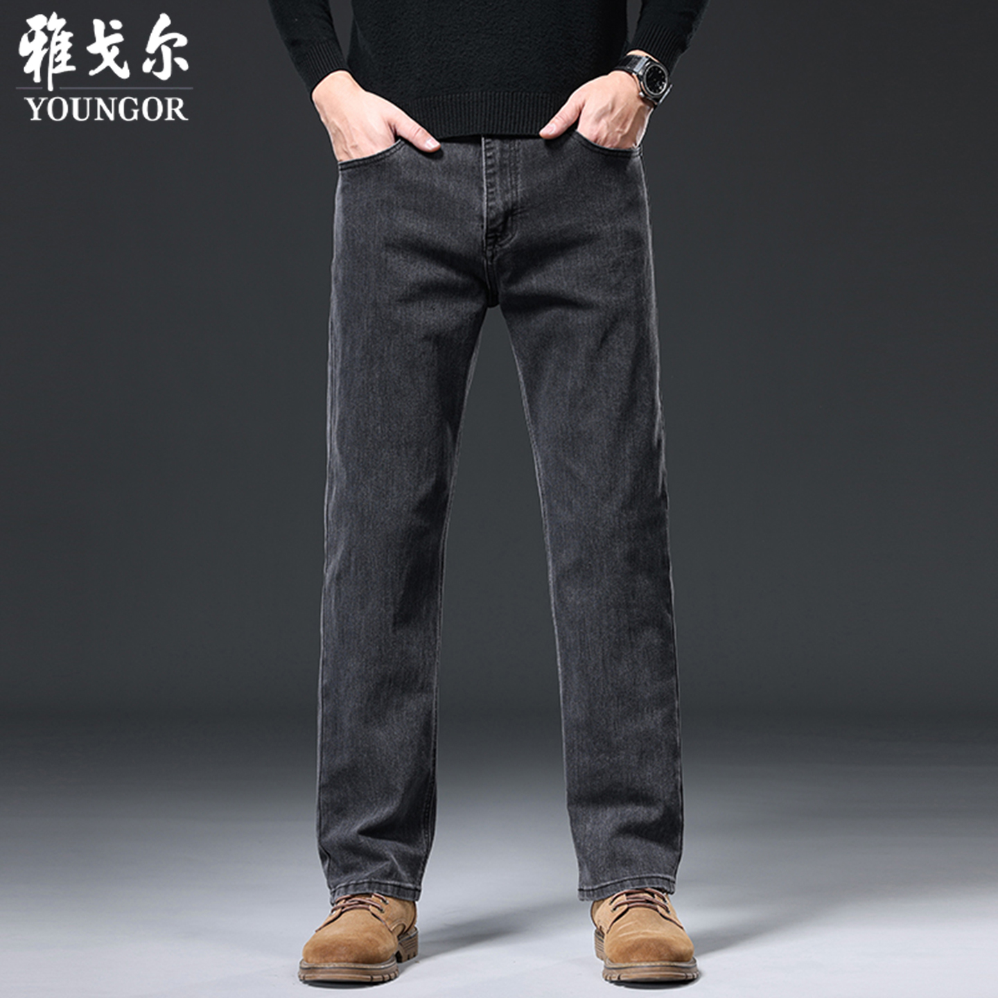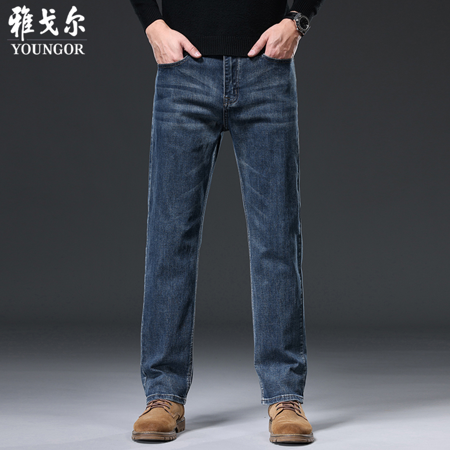 雅戈尔牛仔裤男士2025秋冬新款商务休闲直筒宽松弹力免烫加厚男裤