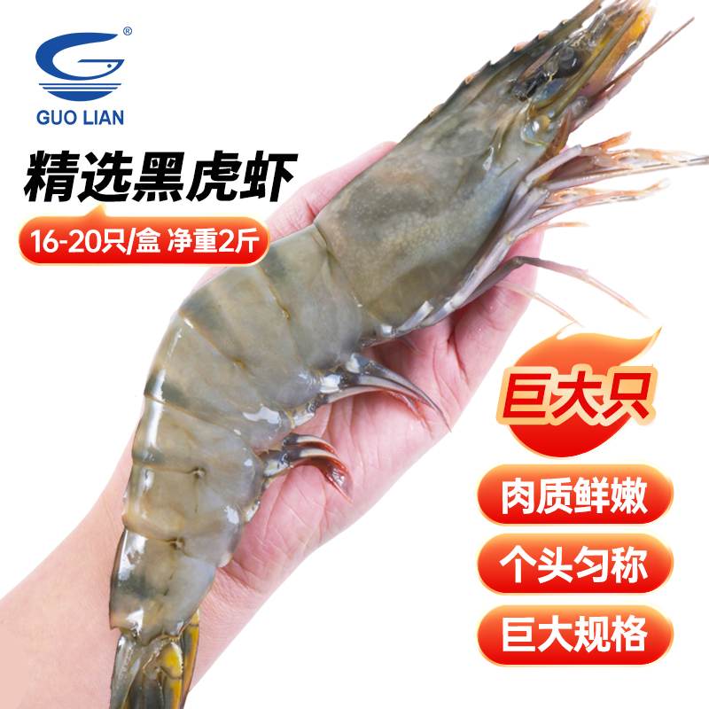 【胡可推荐】国联特大号黑虎虾新鲜大虾鲜活速冻老虎虾冷冻海鲜