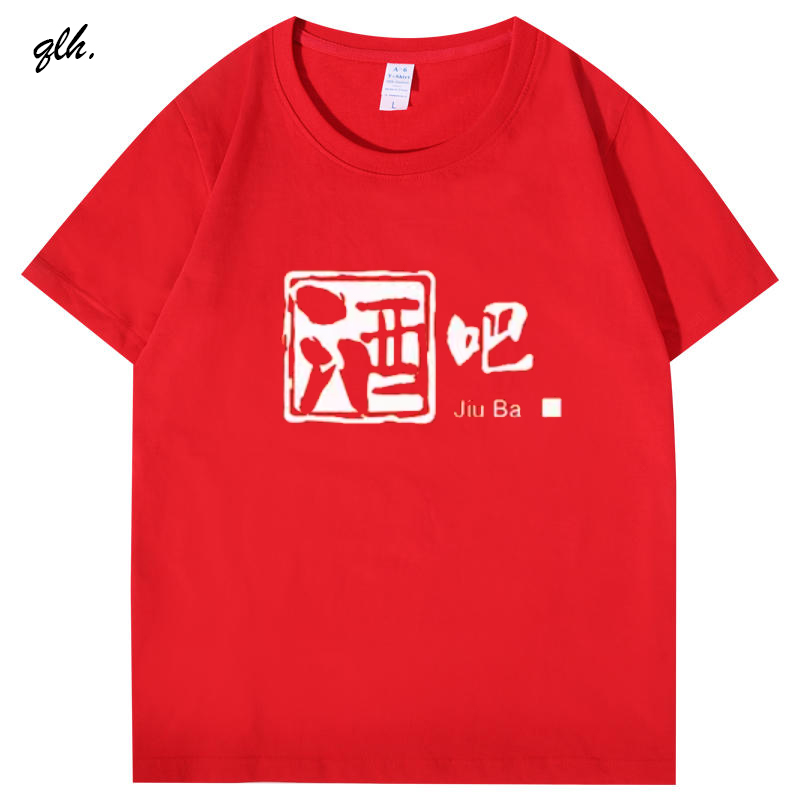 定制酒吧服务员工服女圆领纯棉T恤半袖男印logo短袖宽松吸汗衣服