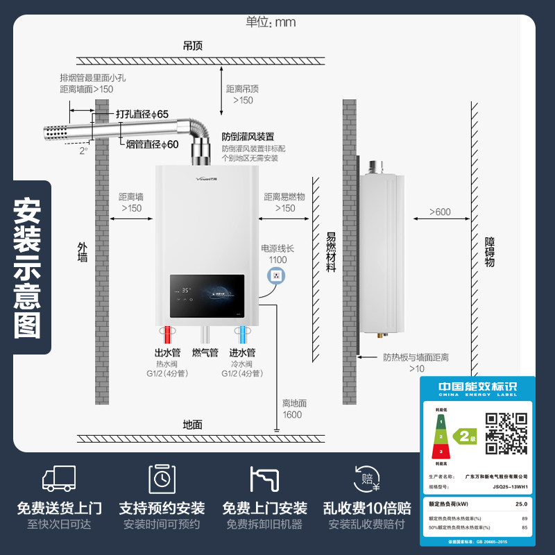 万和家用天然气液化气恒温铜水箱燃气热水器WH1旗舰店13/14/16升