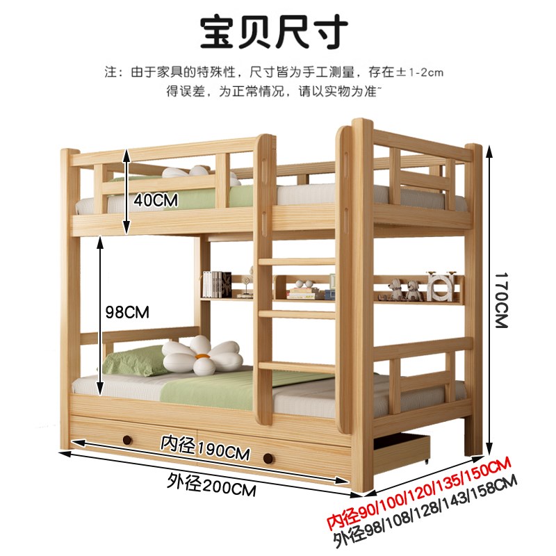 实木上下床双层床儿童床上下铺木床双人床原木色二层高低床子母床