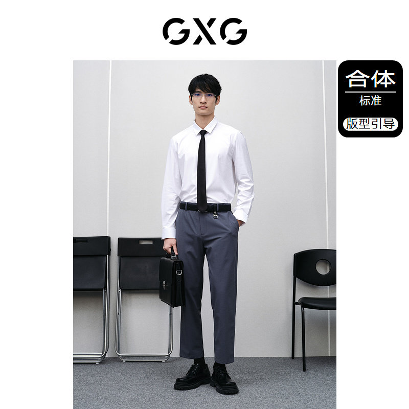 GXG男装 白色提花长袖衬衫 2024年春季新品GFX10301361