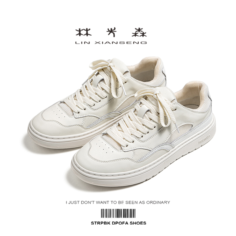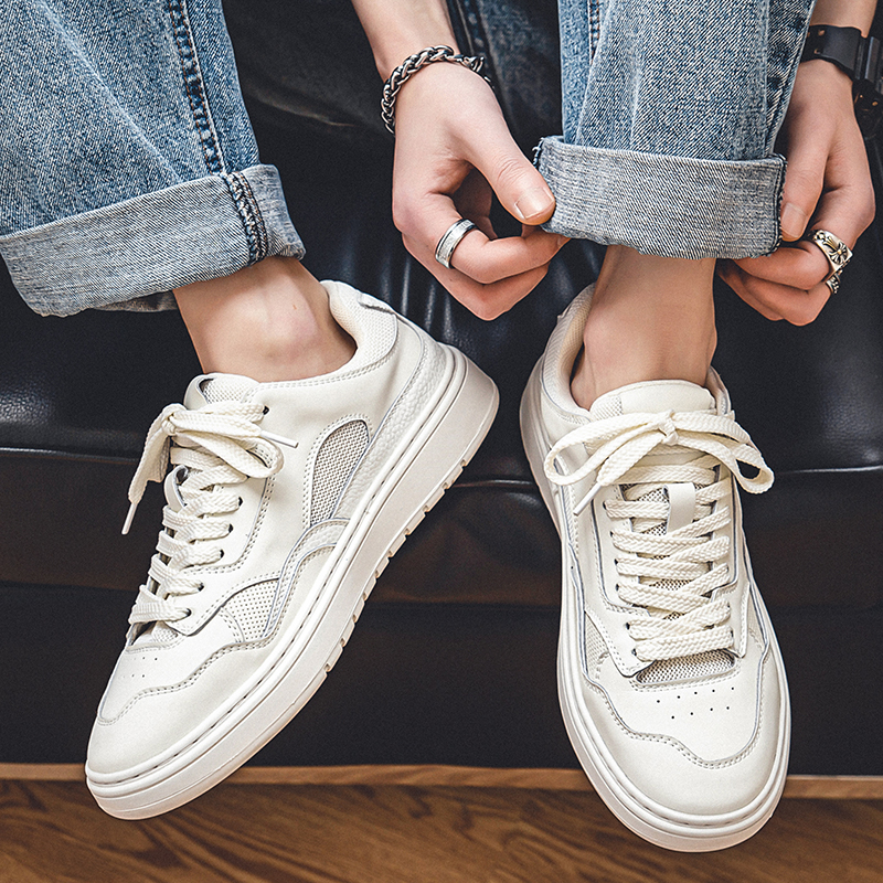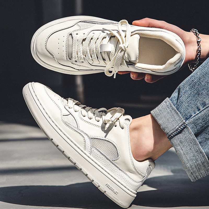 网面板鞋男鞋新款夏季运动鞋韩版真皮拼接休闲增高低帮透气小白鞋
