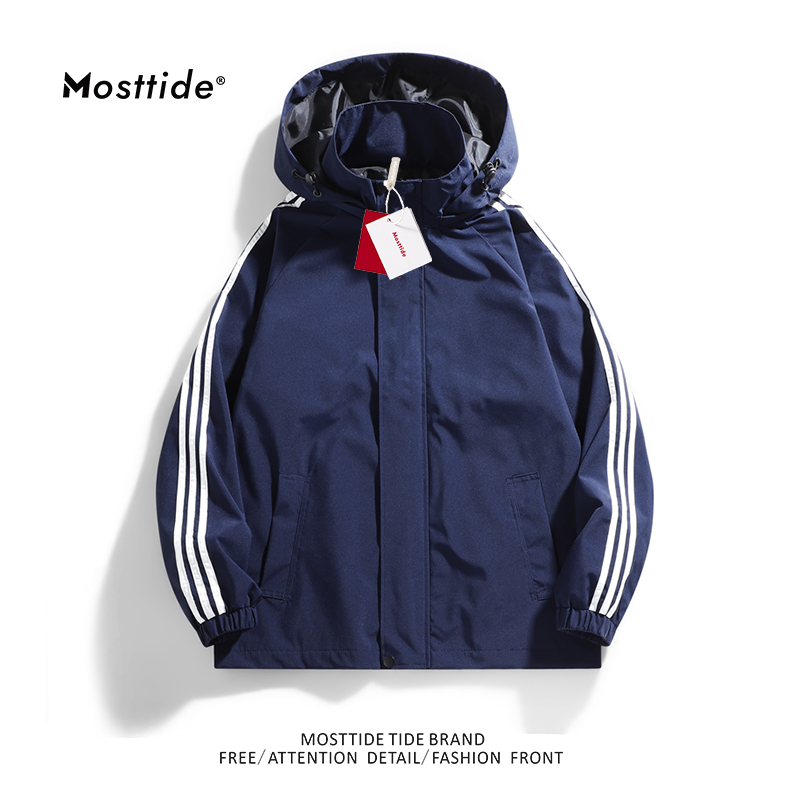 2025连帽冲锋衣男春秋季新款宽松休闲夹克三条杠潮牌情侣薄款外套