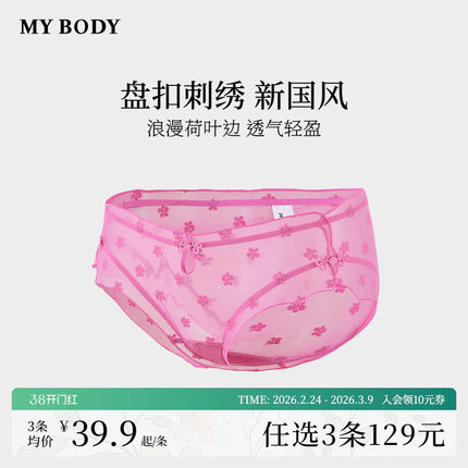 3件129|商场同款MYBODY内裤女纯棉裆国风盘扣性感网纱提花三角裤
