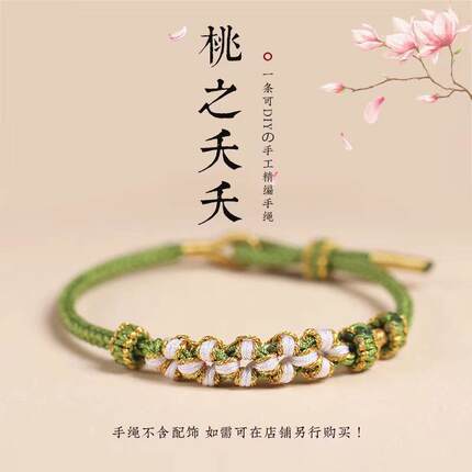 蛇年桃花结手绳手工编织diy红绳手链桃之夭夭成品可穿珠配饰礼物
