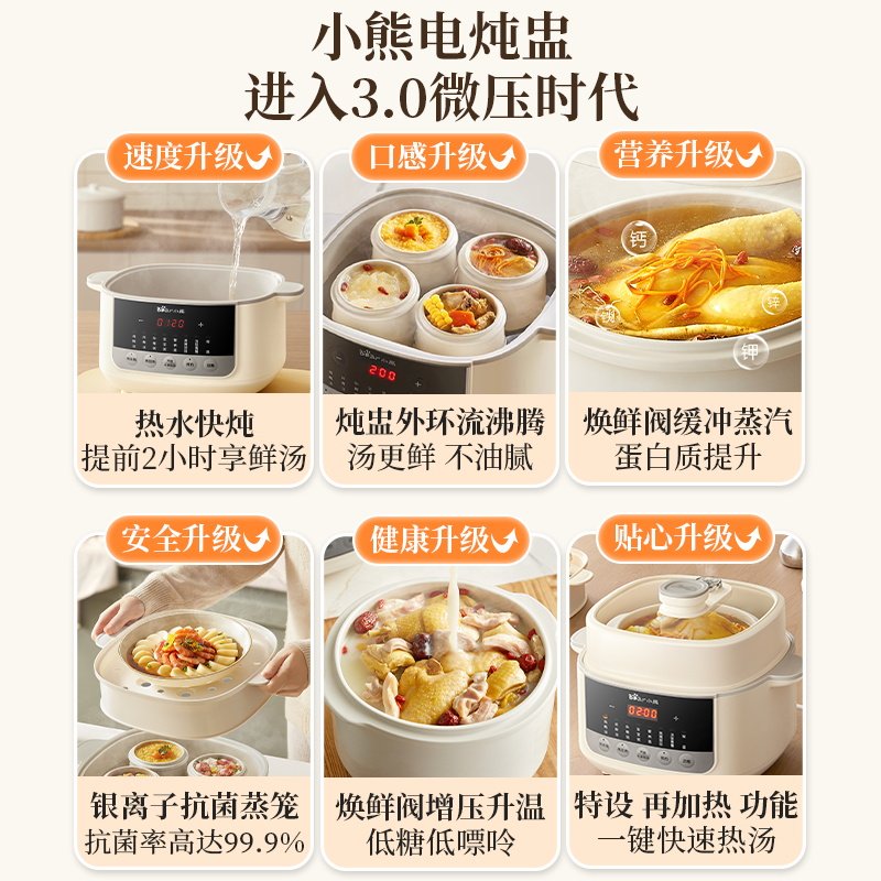 小熊微压电炖锅隔水炖家用电炖盅低嘌呤煲汤炖汤锅煮粥神器烹饪机