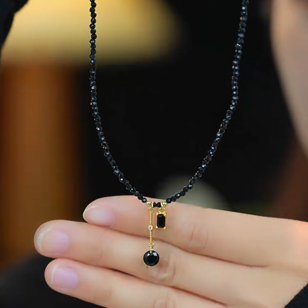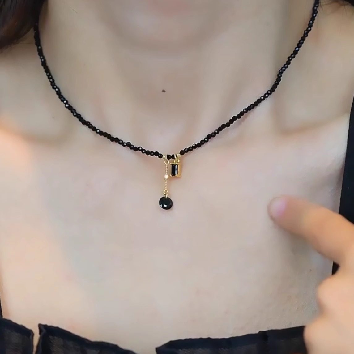 法式黑色水晶方糖项链轻奢小众设计感串珠锁骨链2025年新款颈链女