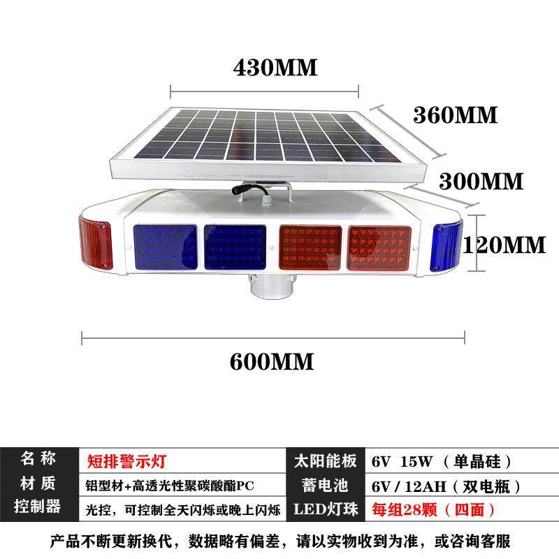 太阳能爆闪灯道路施工LED灯红蓝四灯双面警示灯信号灯交通爆闪灯