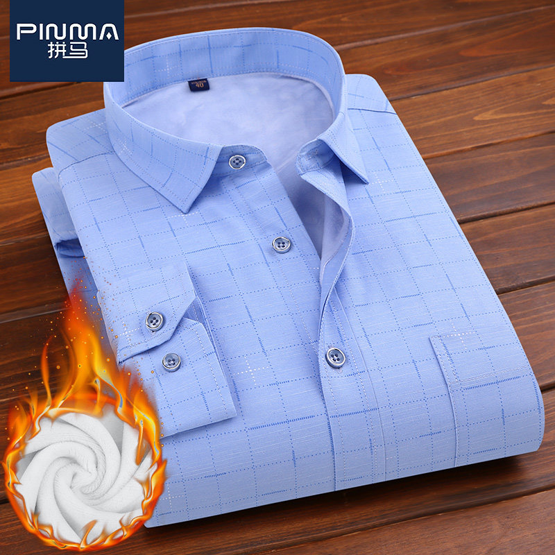 秋冬季男士保暖白衬衫加绒加厚衬衣商务职业工装寸衫棉衣暖厚