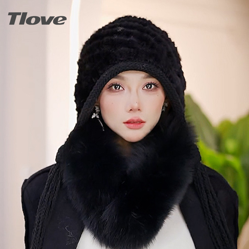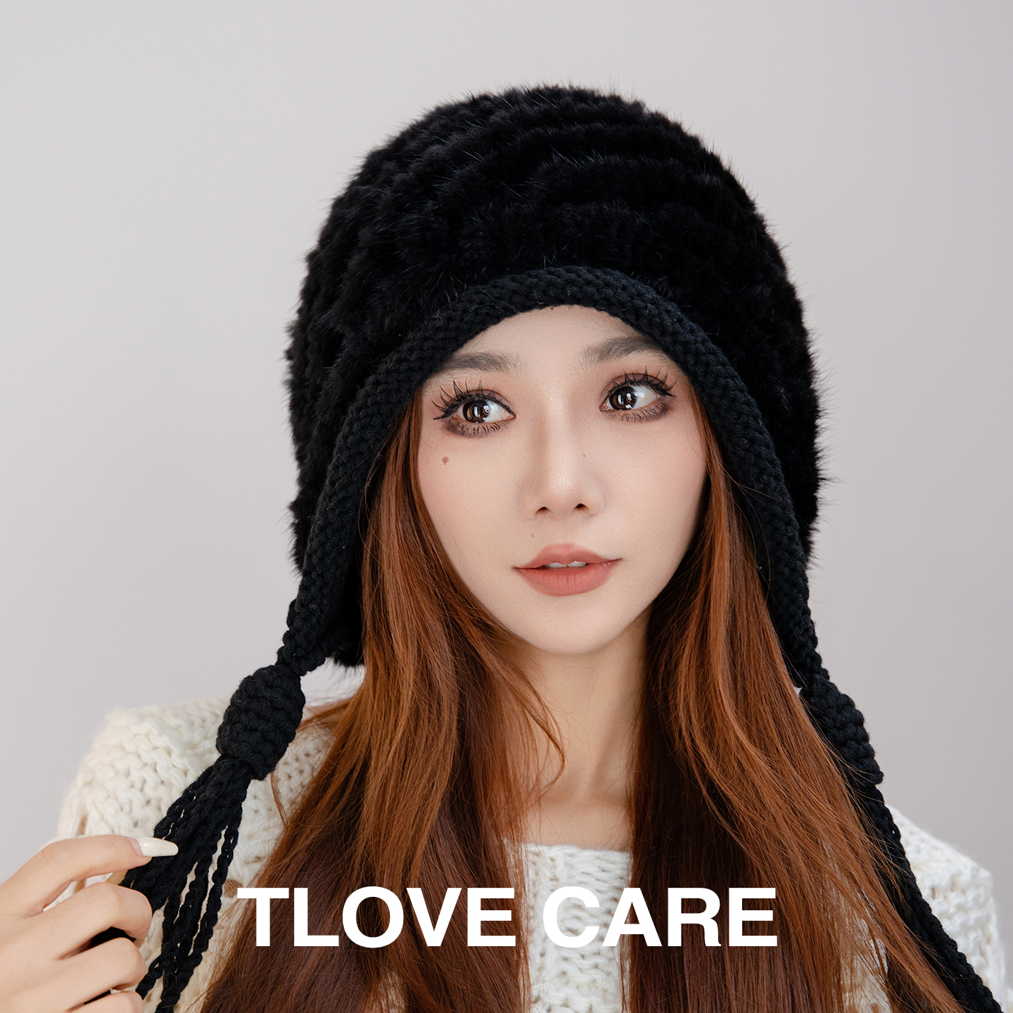 9794+女士秋冬季新款舒适韩版户外休闲貂毛帽子
