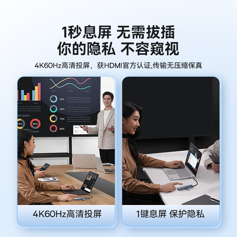 倍思拓展坞typec扩展hdmi投屏usb转换接头分线器hub集线器插头雷电4多功能接口网线转换器笔记本电脑iPad手机