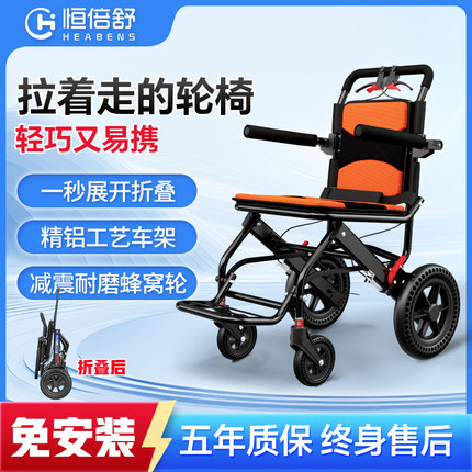 恒倍舒轮椅便携铝合金老人专用小型手推车折叠轻便旅行代步老年人