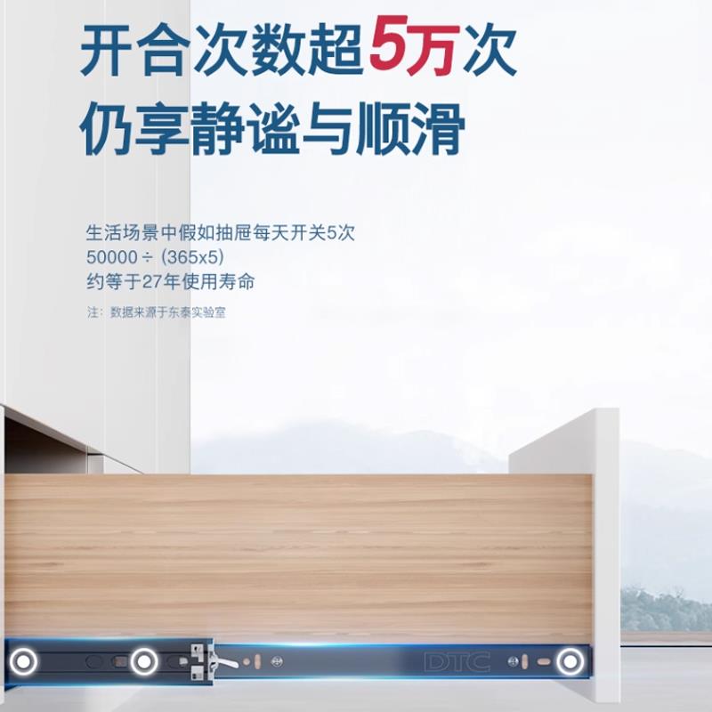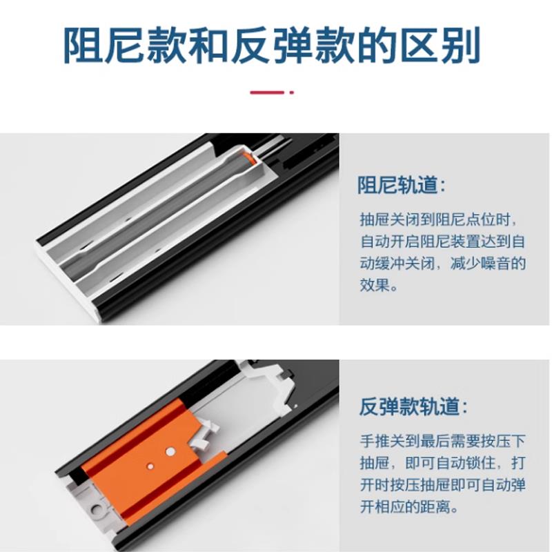 DTC东泰抽屉轨道导轨全拉出三节阻尼缓冲静音滑轨侧装3节滚珠滑道