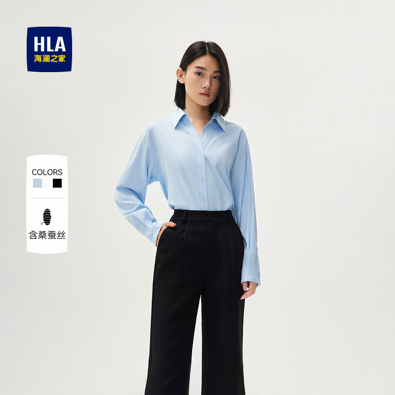 HLA/海澜之家含桑蚕丝商务休闲长袖V领白衬衫秋新款宽松空调衫女