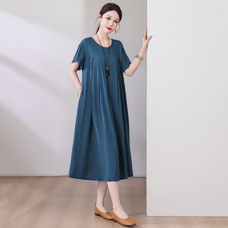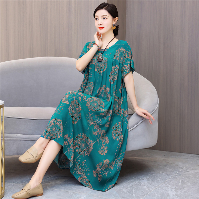 夏季纯棉绸连衣裙大码碎花睡裙女宽松人造棉妈妈高端睡衣连衣裙薄