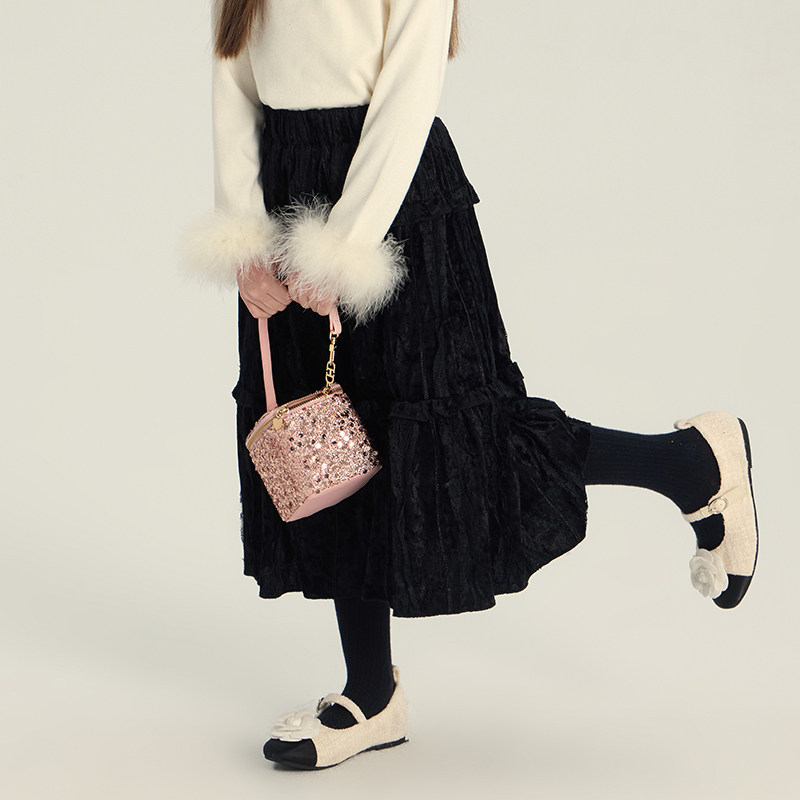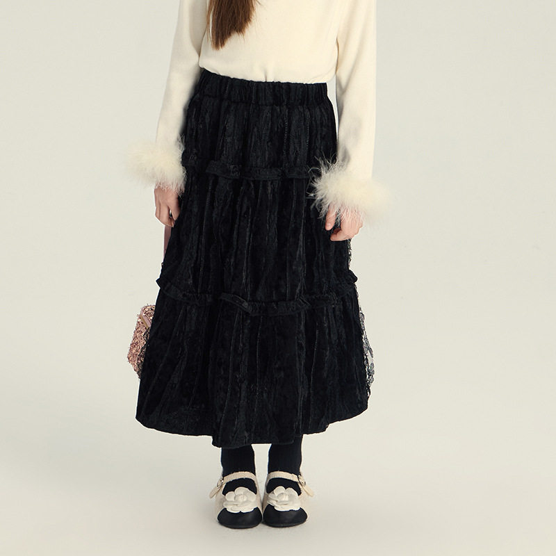 冬装女童蕾丝提花百搭半身裙