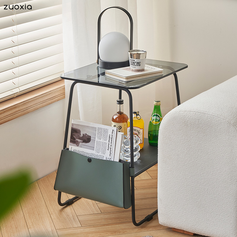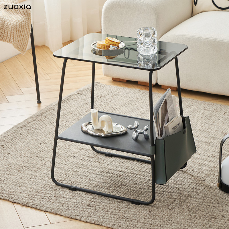 北欧简约沙发边几小户型茶几桌子迷你方床头柜置物架金属玻璃角几