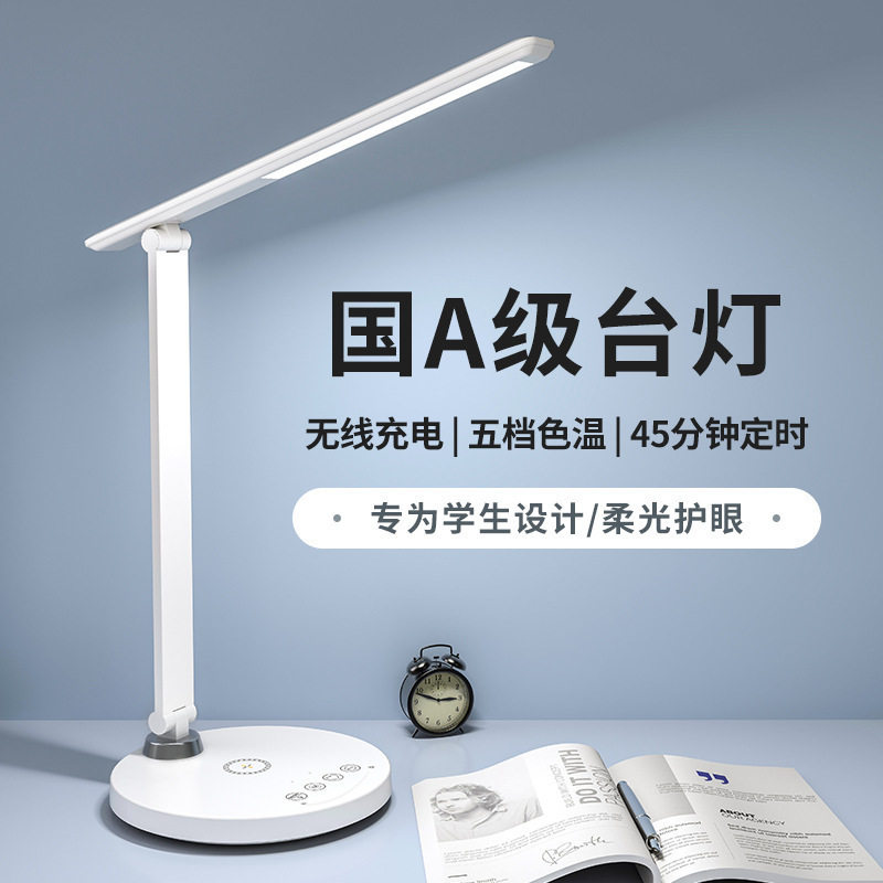 源头工厂护眼书桌折叠式LED床头10W无线充学生读写专用台灯学习灯