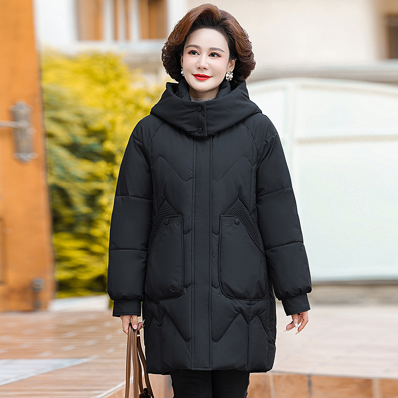 中老年羽绒棉服女中长款妈妈冬装加厚大码60岁70老人奶奶太太外套