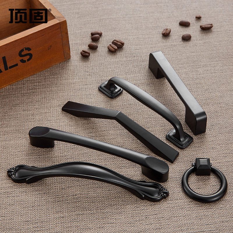 顶固橱柜抽屉拉手美式黑色衣柜门把手现代简约欧式柜子单孔小拉手