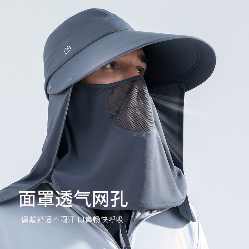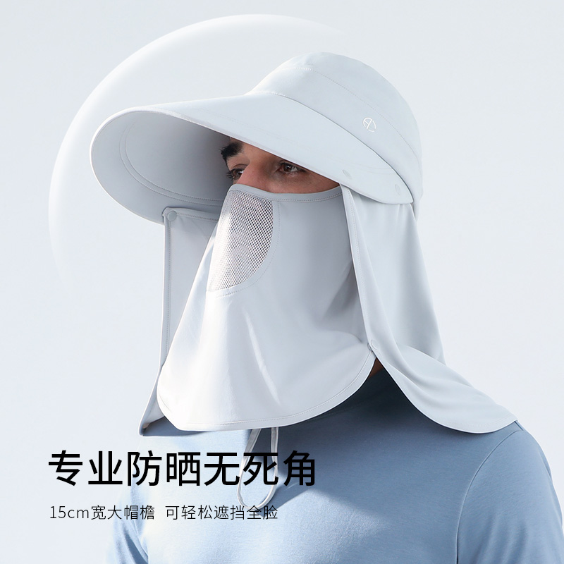 ACUC防晒帽男士大帽檐防紫外线遮阳帽男户外骑车护颈钓鱼帽子新款