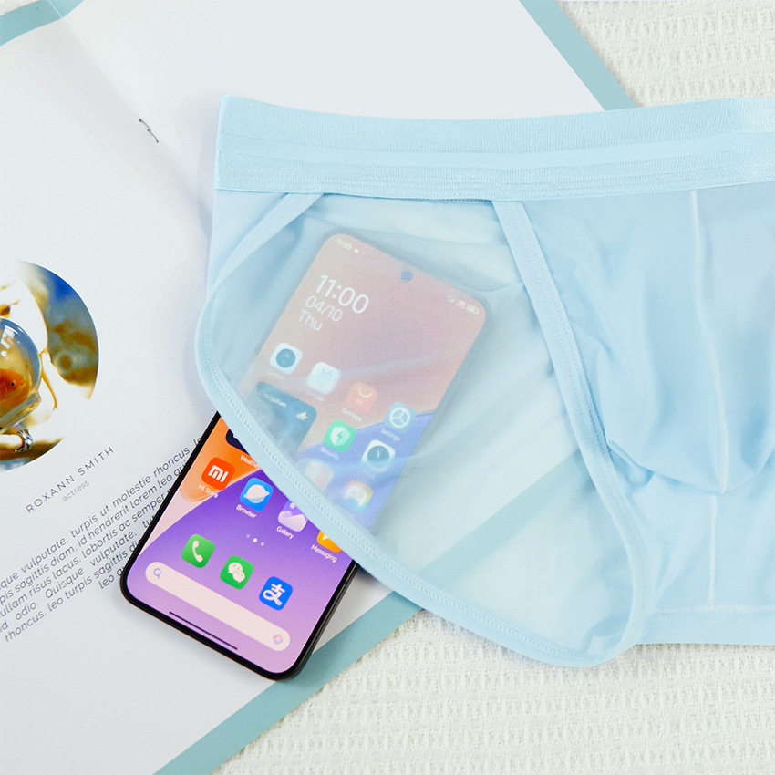 夏单层超薄冰丝高透视三角短裤头男欧美风网纱低腰高叉性感内裤衩
