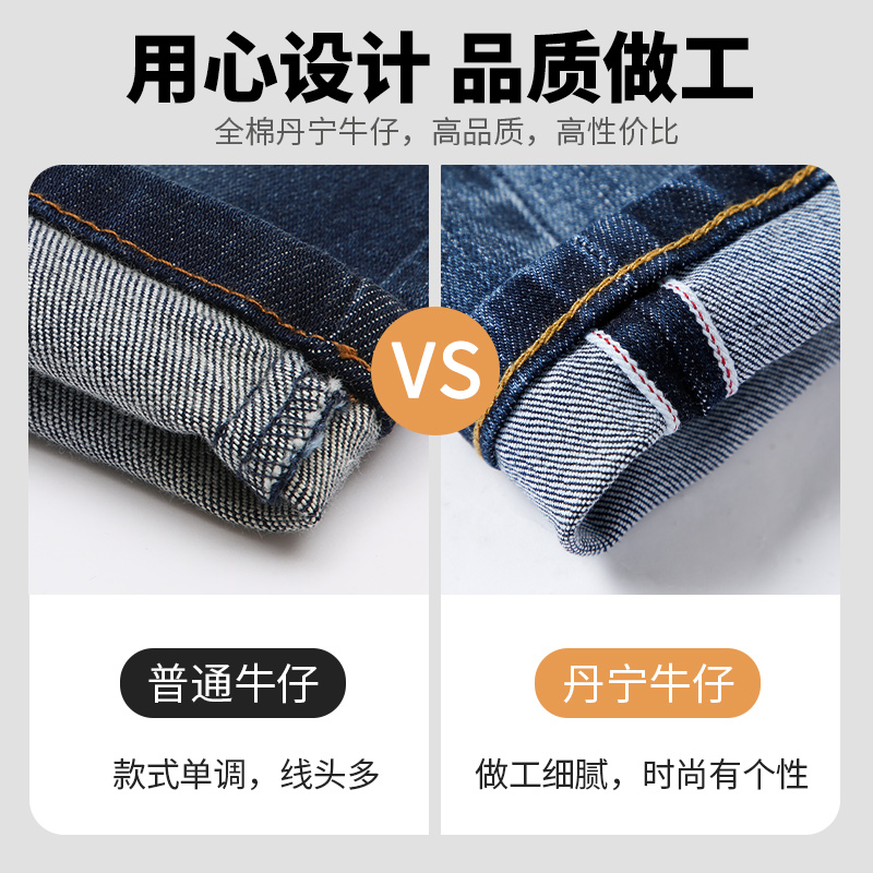 2025年秋款弹力九分牛仔裤男直筒宽松休闲小脚蓝色赤耳丹宁裤子