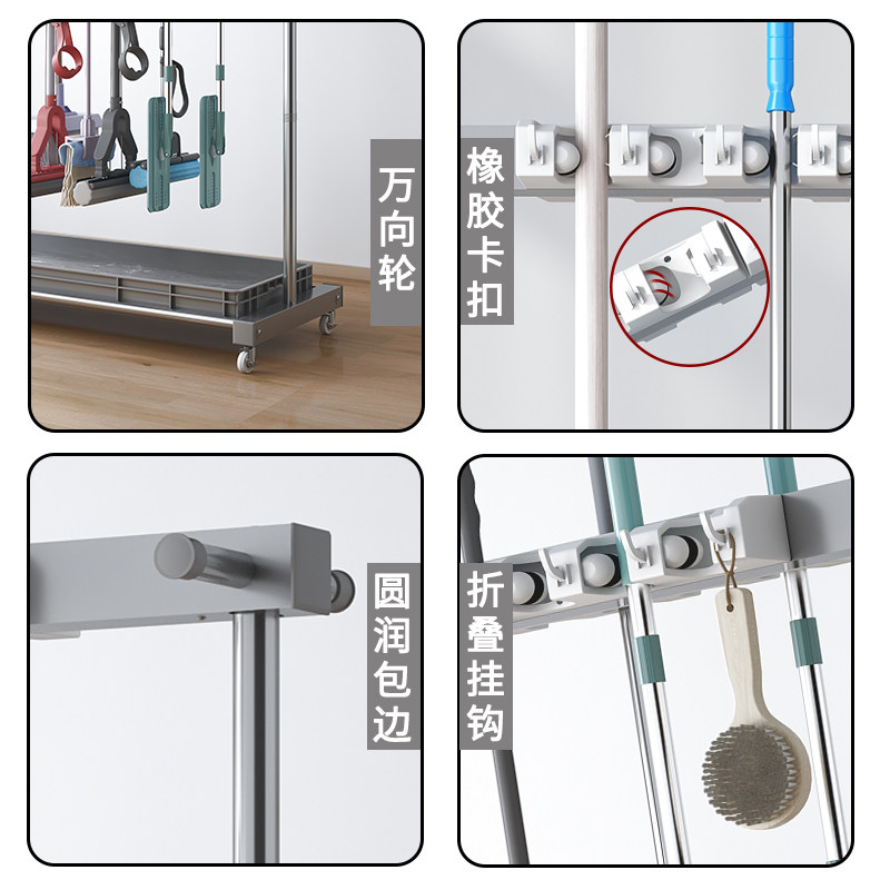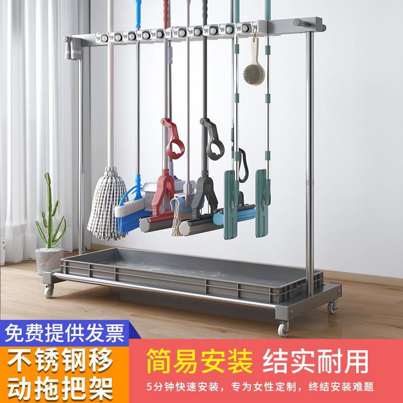 拖把架落地式可移动不锈钢置物架放扫把沥水加粗清洁工具收纳商用