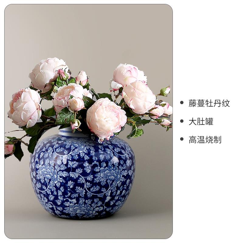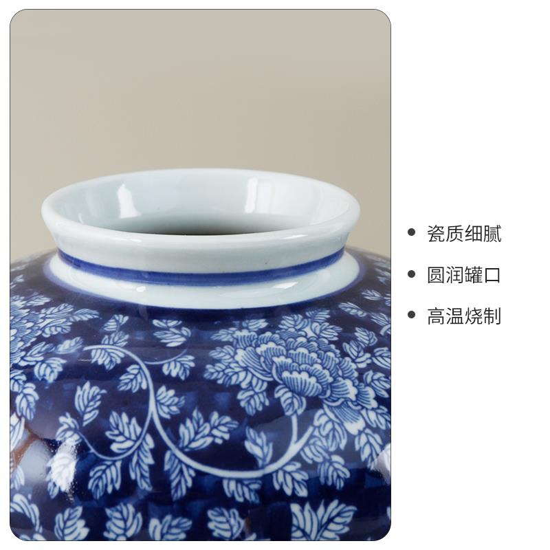 中式陶瓷花瓶摆件装饰品景德镇青花瓷将军罐客厅玄关插花轻奢花器
