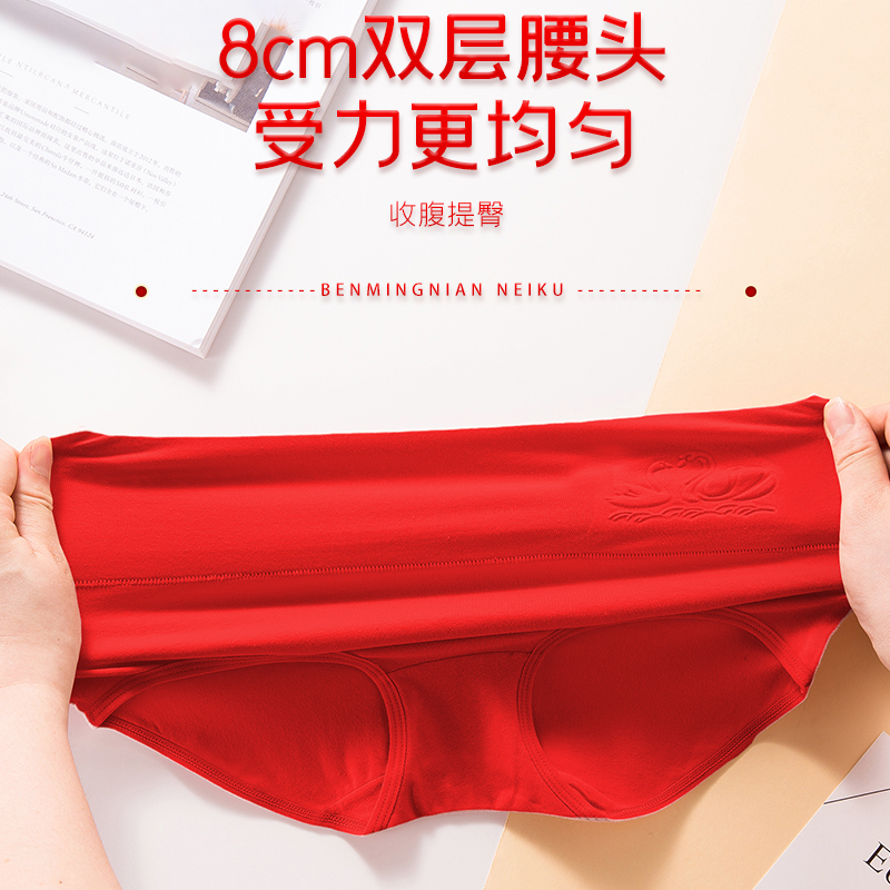 浪莎本命年内裤女高腰纯棉性感收腹提臀胖mm全棉龙年喜庆红色大码