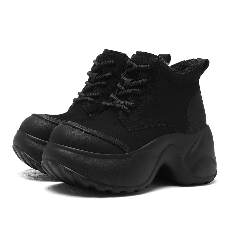 欧货磨砂系带JK厚底靴气质鞋厚底松糕跟小个子8cm单鞋女