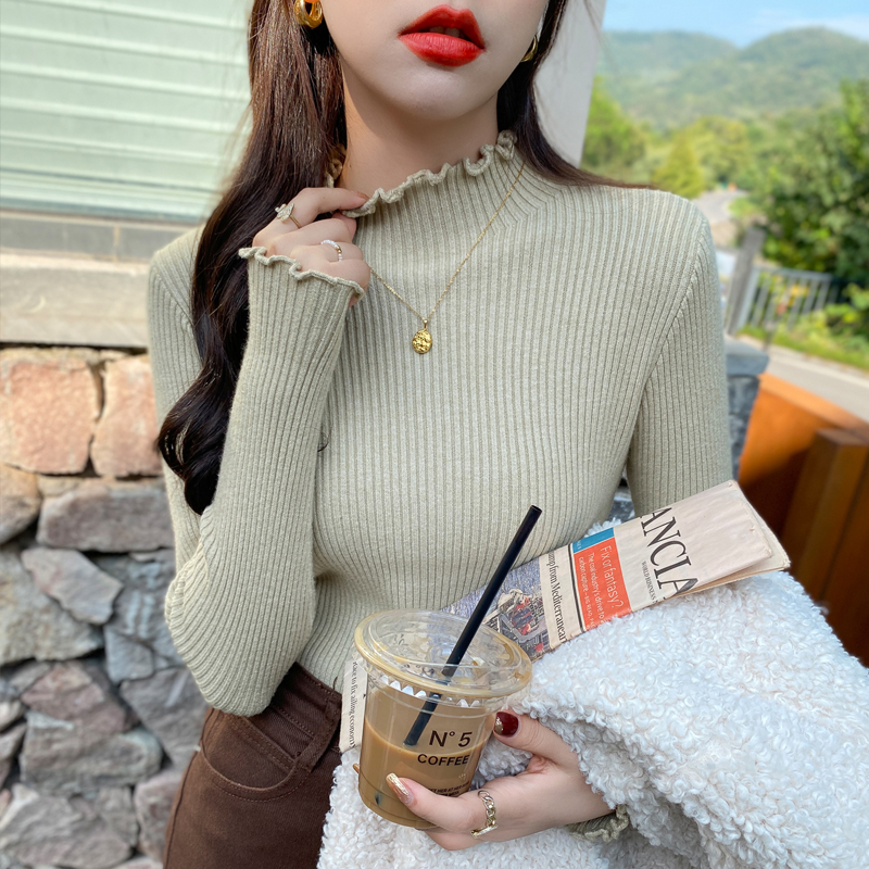 木耳边打底衫女秋冬内搭修身毛衣2025年新款洋气春秋针织长袖上衣