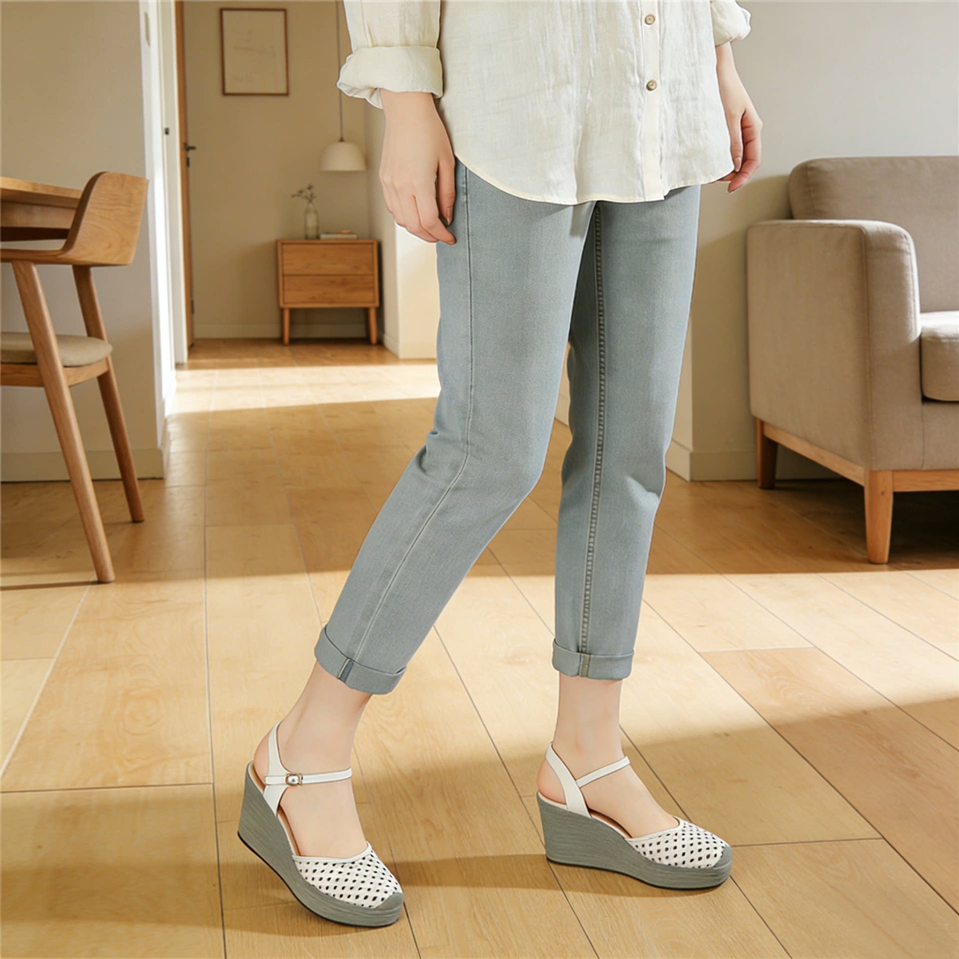 包头凉鞋女春夏2026新款复古厚底松糕鞋真皮编织坡跟鞋子高跟女鞋