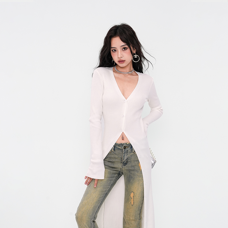 秋冬慵懒风针织外套女修身小个子收腰显瘦气质中长款开衫罩衫上衣