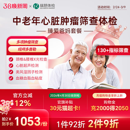 瑞慈体检卡 臻爱爸妈套餐心脏彩超肿瘤癌筛男女士父母中老人通用