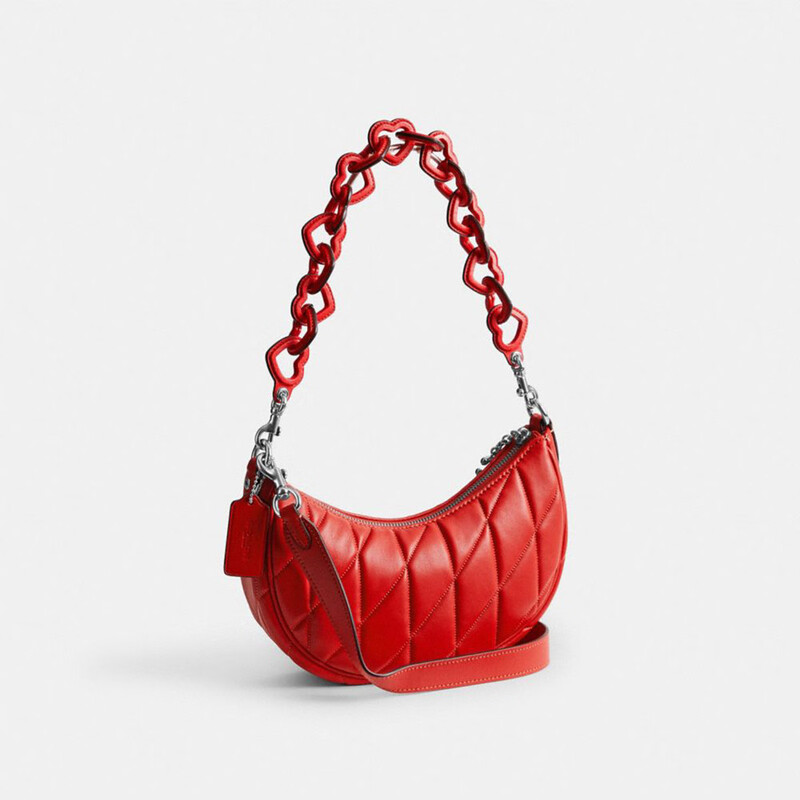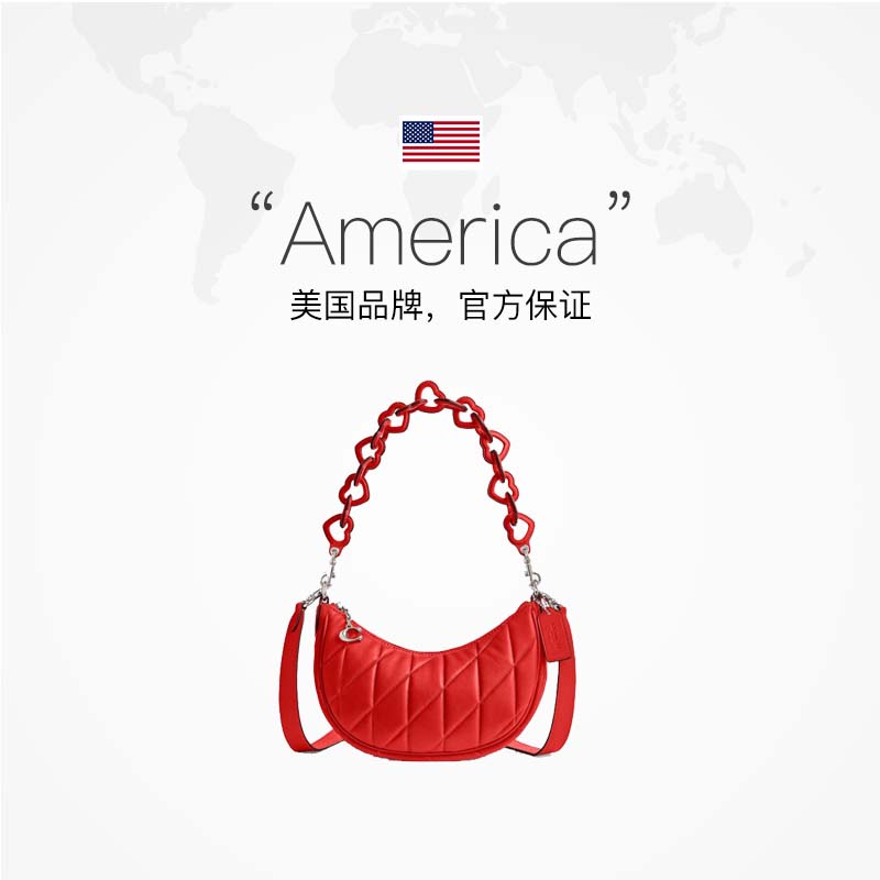 【自营】COACH/蔻驰菱格缝线皮革女包手提单肩斜背红色送礼小包