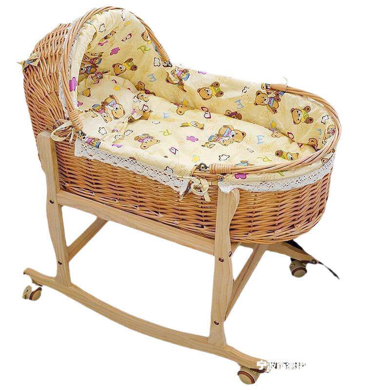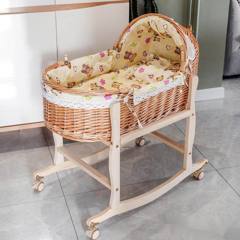 藤编婴儿摇篮床儿外出便携手提篮车载安抚睡篮宝宝床摇篮实木一件