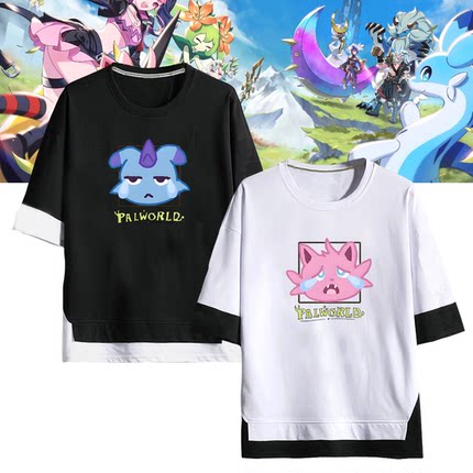 steam游戏幻兽帕鲁周边瞅什魔同款卡通cos夏可定制短袖T恤假两件