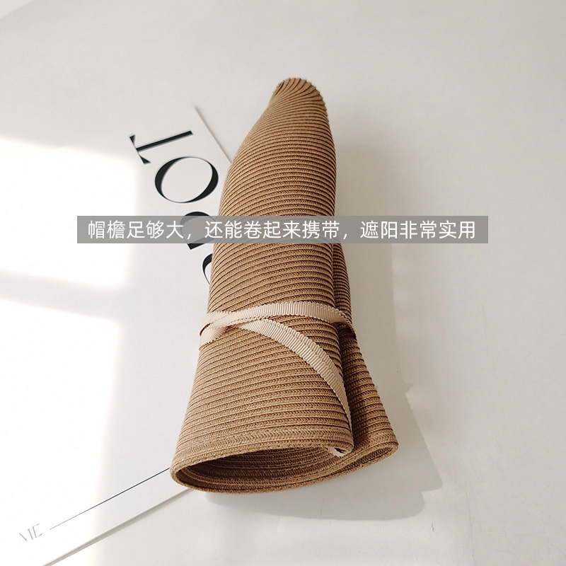 日本特细亚麻编织草帽女夏季旅游遮阳大沿萝莉帽可折叠防晒渔夫帽