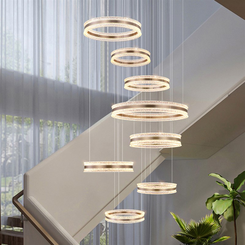 复式楼吊灯极简轻奢现代简约设计师旋转楼梯长吊灯别墅客厅大吊灯
