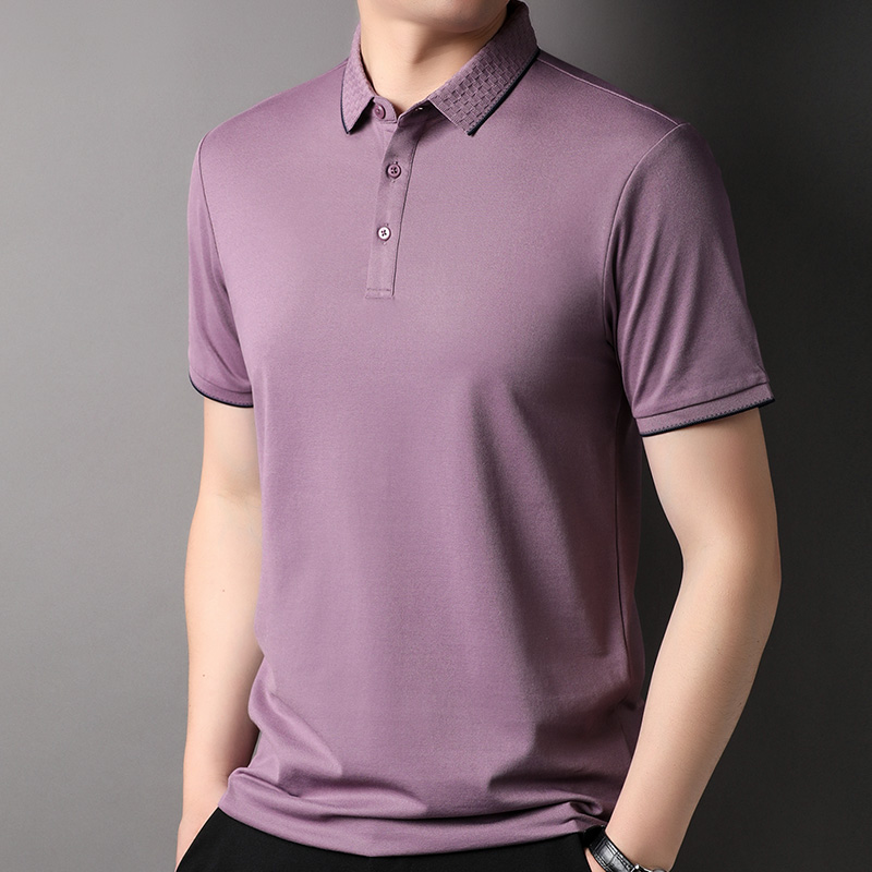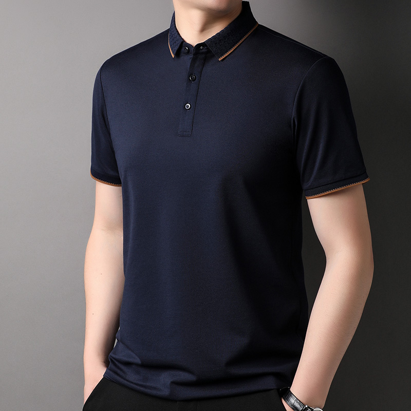 桑蚕丝棉帅气夏季舒适时尚翻领短袖T恤男都市休闲新款体恤 赫祖丁