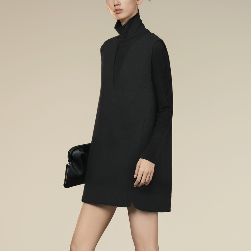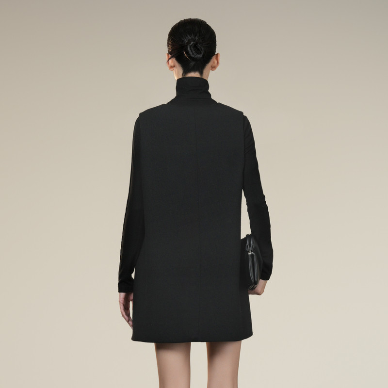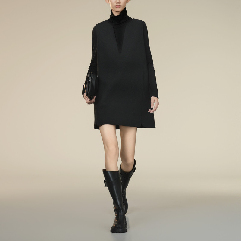 XG/雪歌2025年冬季新款V领无袖羊毛背心直筒连衣裙女XK404001A590