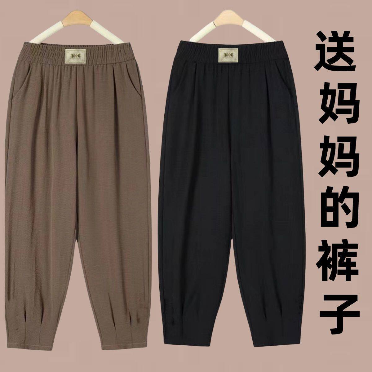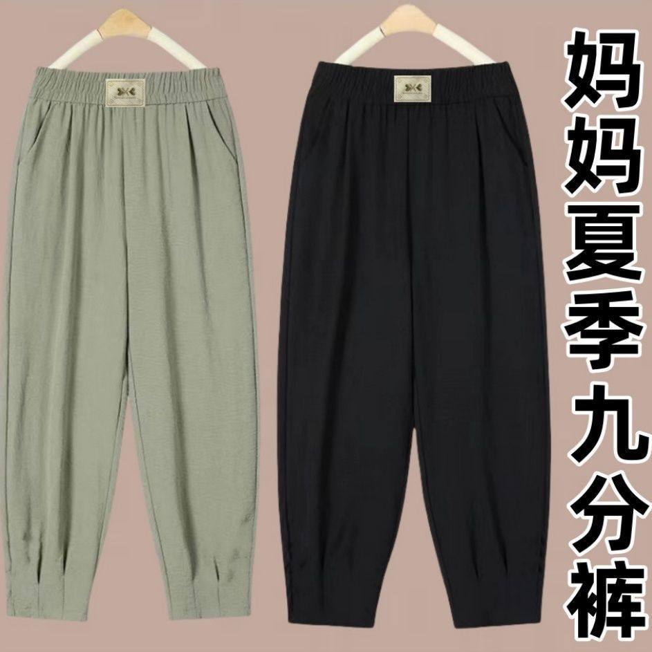 【买一送一】冰丝哈伦裤女夏季薄新款高腰宽松休闲垂感九分灯笼裤