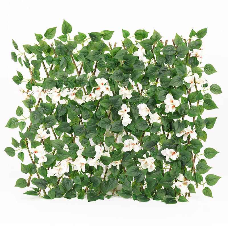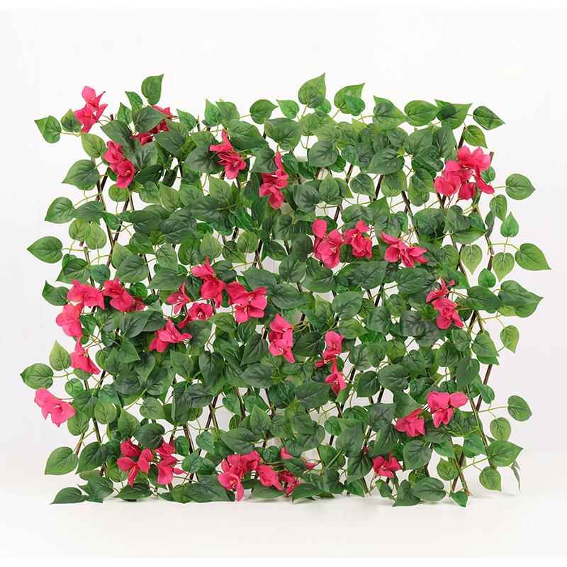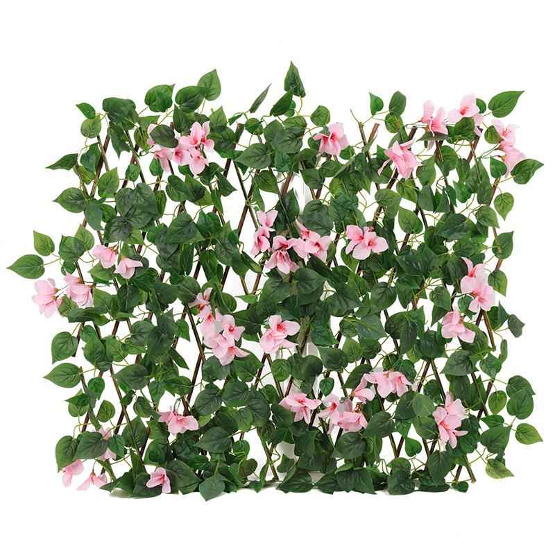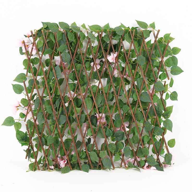 仿真篱笆 伸缩围栏花园装饰木制篱笆仿真花过胶叶子栅栏 仿真植物
