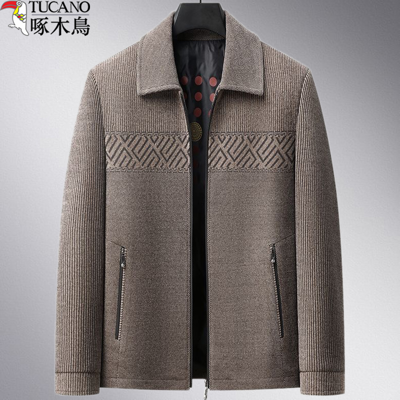 啄木鸟中年男士外套夹克衫翻领春秋季薄款中老年人爸爸春装上衣服
