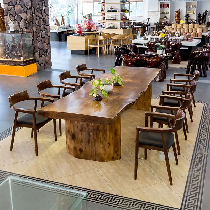 实木餐桌椅组合现代简约家用自然边洽谈桌两用大型原木大板吃饭桌
