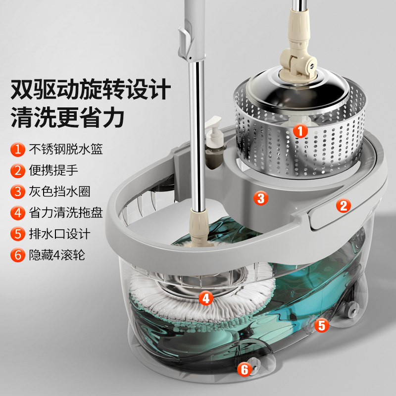 拖把杆旋转通用旋转拖把家用吸水懒人免手洗干湿两用一拖地拖桶净