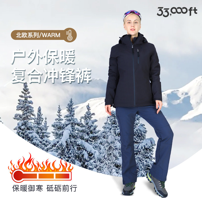 33000ft冲锋裤女户外秋冬防水透气保暖修身登山裤加厚抓绒软壳裤